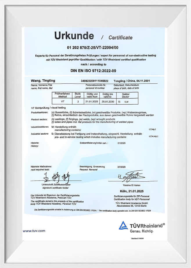 • گواهی بازرسی کیفیت جوش بصری ISO 9712